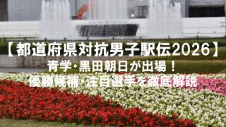 駅伝【都道府県対抗男子駅伝2026】青学・黒田朝日が出場!優勝候補・注目選手を徹底解説 都道府県対抗男子駅伝(正式名称:天皇盃 第31回 全国都道府県対抗男子駅伝競走大会)は、2026年1月18日に広島県で開催される全国規模の駅伝大会だ。本記事では、ひろしま男子駅伝2026の大会概要、優勝候補となる都道府県と順位予想、注目選手、そして黒田朝日の起用区間や他の青山学院大学の選手の起用までを徹底解説する。 2026.01.08駅伝